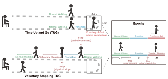 정상 보행, 전이 구간, FOG 또는 VS로 구성된 2초 epoch 분석 구조